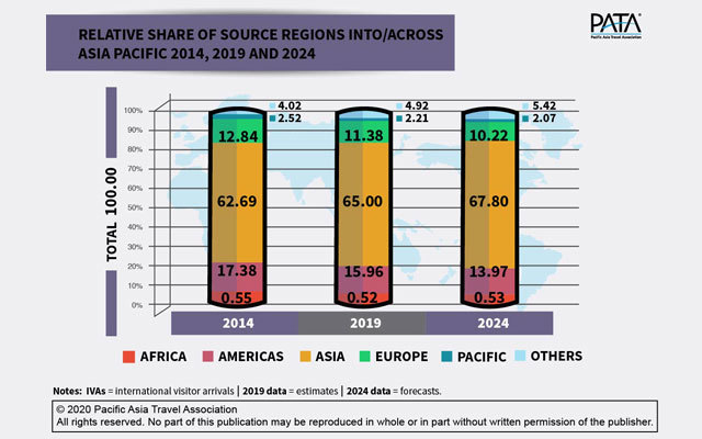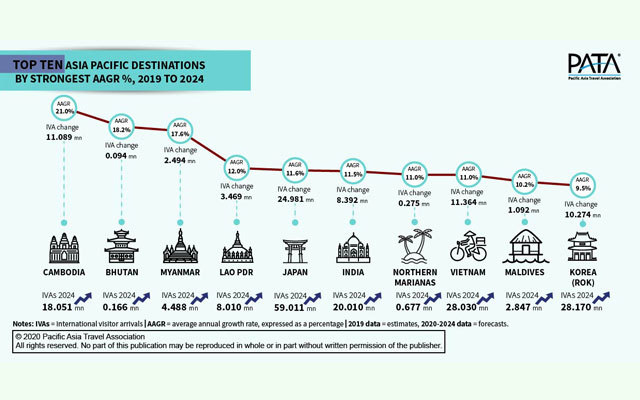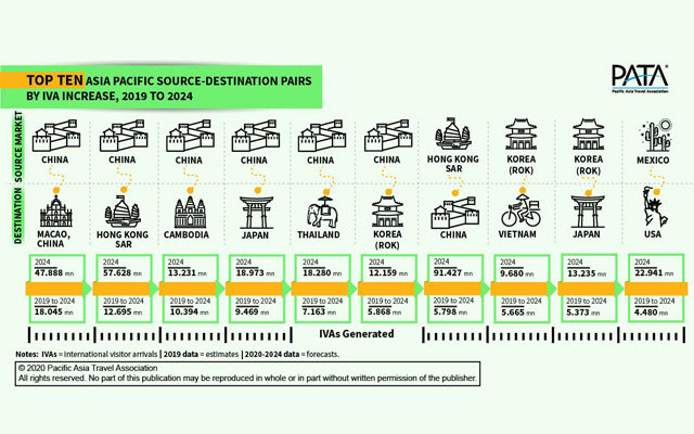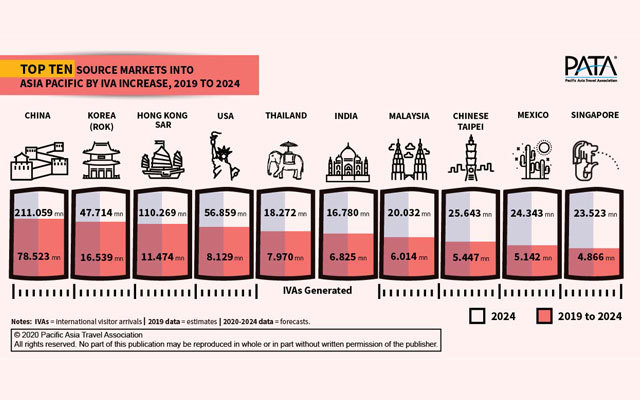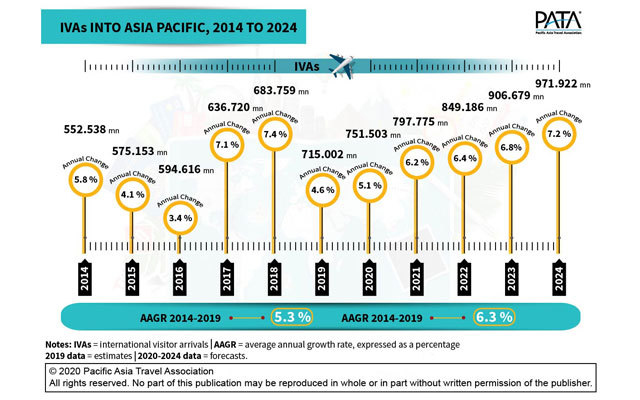 Asia-Pacific remains solidly on the path to welcome close to one billion international visitor arrivals (IVAs) over the next five years. This was one of the key predictions from the Executive Summary of the Asia Pacific Visitor Forecasts 2020-2024, released yesterday by the Pacific Asia Travel Association (PATA). Covering the years 2019 to 2024 and 39 destinations within the region, these forecasts anticipate a volume of over 971 million international visitor arrivals into Asia-Pacific, by 2024.
