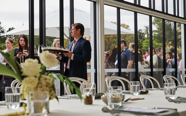 The Royal Botanic Gardens Melbourne offers a picturesque Australian native setting for a garden lunch. As a seasonal pop-up, the Alto Structure on Dog Flat Lawn accommodated 350 seated guests for AIME 2024’s Sunday brunch. A cocktail setting would fit 500.