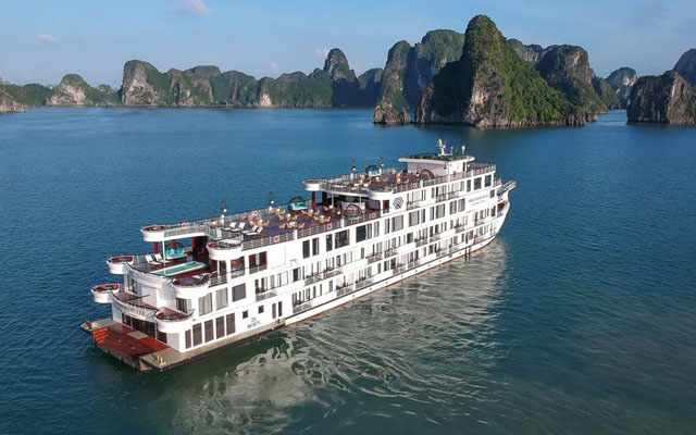 On the first day of the cruise, passengers board Ambassador Cruise 1, the largest and most luxurious vessel in Halong Bay, which boasts 46 cabins with a private balcony or terrace, twin 360-degree sundecks, a restaurant, piano lounge, bars, an open-air Jacuzzi pool, and a spa.