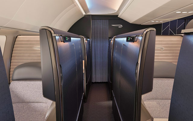 The cabin’s flowing design also enhances convenience, with dedicated personal luggage space allowing passengers to easily settle in before their flight. The suite is further equipped with ambient lighting, window blinds, and soft panelling that helps absorb sound, providing a sense of total privacy.