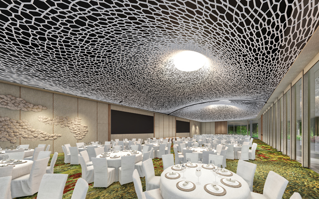 The resort’s 446m² ballroom seats 300, with its eye-catching ceiling designed after the rare Bridal Veil Stinkhorn. Nearby is a spacious bridal room for wedding delegations. Two function rooms that seat up to 40 people combined are also available.