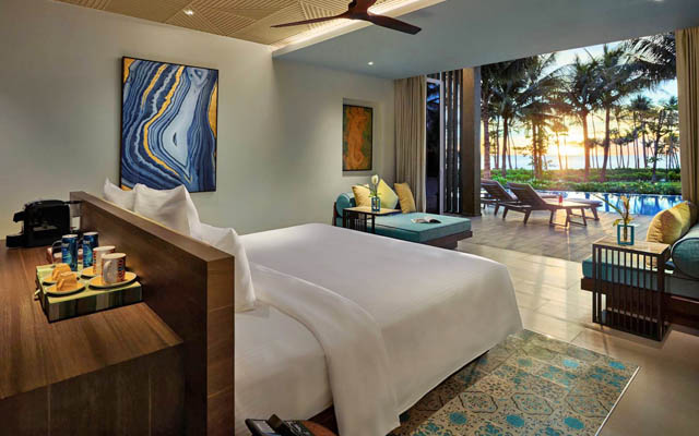 Pullman Phu Quoc Beach Resort, just 15 minutes from Phu Quoc International Airport, offers 331 rooms, suites, and cabanas, including Premium Deluxe Ocean View rooms with sweeping Gulf of Thailand vistas. The resort combines bold design with comfort, perfect for both relaxation and dynamic events.