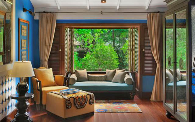 Rosewood Luang Prabang reflects Laos’ cultural identity through traditional architecture and materials. Located 10 minutes from the UNESCO World Heritage city, the resort is set among mountains with a waterfall and creek running through the estate.