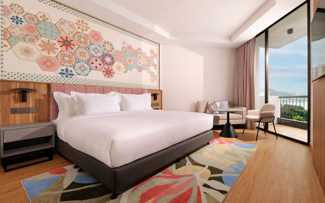 The resort offers 318 rooms and suites across two wings, with sea or beachfront views. Interiors reflect Peranakan influences, and rooms are equipped with a 55-inch smart TV, high-speed Wi-Fi and an in-room AI voice assistant.