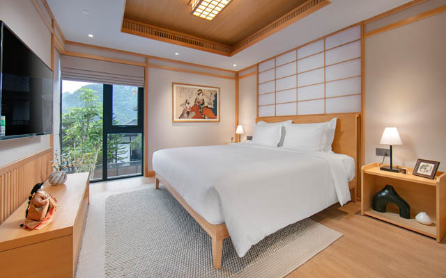 The resort has 178 villas and 38 rooms, all with private onsens and access to saunas. Villas range from two to four bedrooms, with sizes from 110 to 550 m². Two larger villas include five bedrooms, private dining areas and additional facilities.